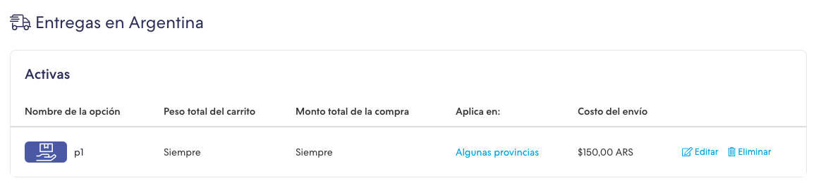 - Dirigirse a Configuraciones y en el listado de opciones de entregas tiene que buscar “Entregas en Argentina”.