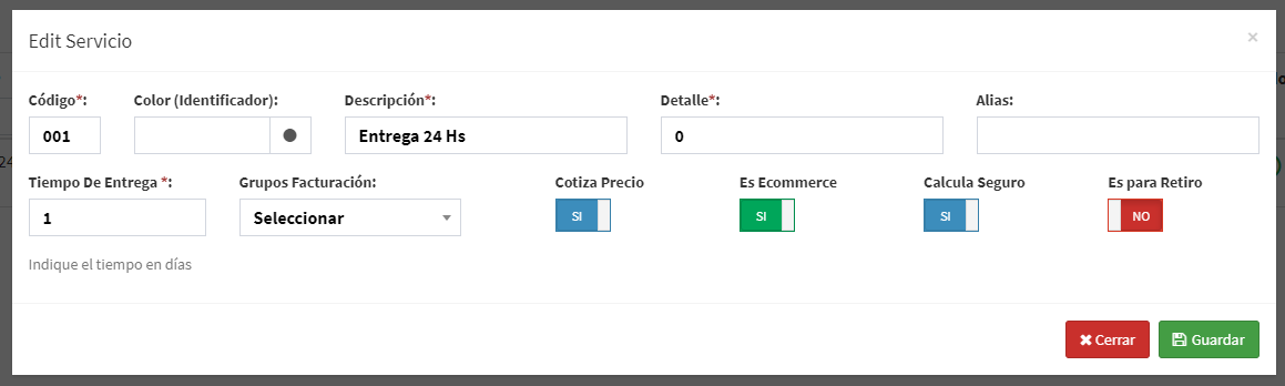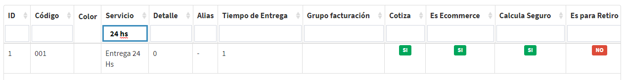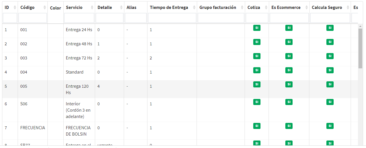 En caso de que los hubiese, otra posible opción es que el servicio elegido no este configurado para cotizar precio. Para ello, dirigirse a Menú de Configuraciones Generales/Servicios y buscar en el Listado que figura en la pantalla el servicio, filtrándolo por su nombre en la columna Servicio.